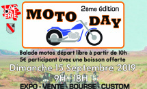 Venez passer un bon moment avec des amis ou en famille au « Moto Day 2 ème édition »Entrée gratuite pour tout public.Réservation emplacement pour exposant au forfait de 10€  Inscription au 0478/39.22.33
