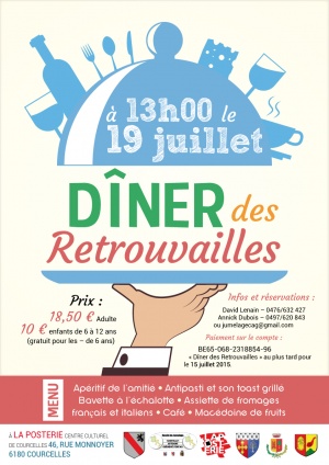 Paiement sur le compte BE65-068-2318854-96 "Dîner des Retrouvailles" au plus tard pour le 15 juillet 2015.
