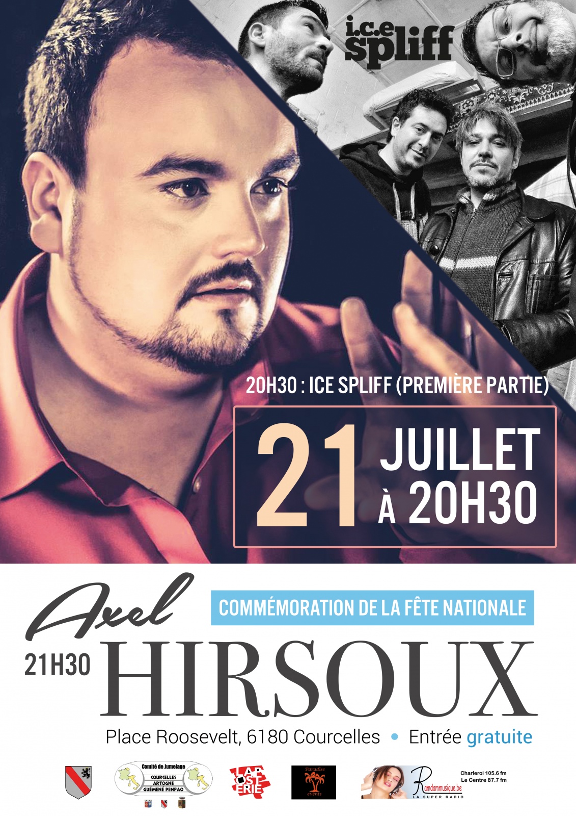 Le Comité de Jumelage, en collaboration avec la Commune de Courcelles et La Posterie Centre culturel ASBL, organise à l'occasion de la Fête Nationale et la Fête des Jumelages, un concert gratuit sur la place Roosevelt, le mardi 21 juillet 2015 ! Nous vous y attendons nombreux !