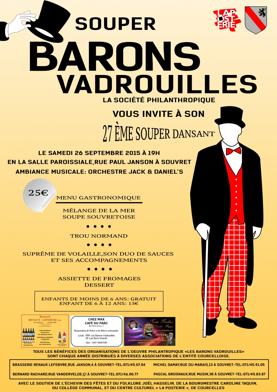 La société philanthropique "Barons Vadrouilles" vous invite à son 27ème souper dansant.