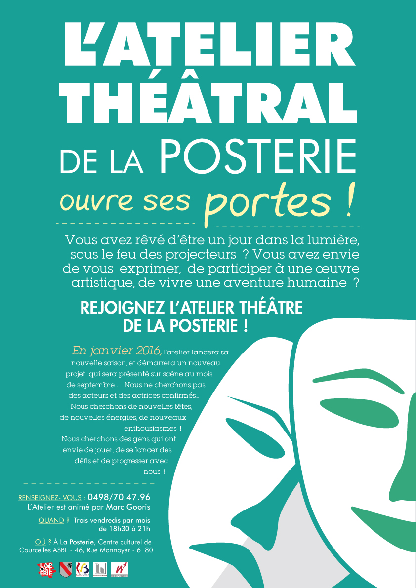 Vous avez rêvé d’être un jour dans la lumière, sous le feu des projecteurs ? Vous avez envie de vous exprimer, de participer à une œuvre artistique, de vivre une aventure humaine ? Rejoignez l’Atelier Théâtre de la Posterie !