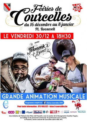 Venez-nous rejoindre sur les Fééries de Courcelles pour une grande animation musicale et festive, par « Mononk’s Band », le vendredi 30 décembre 2016 à 18h30 sur la place Roosevelt :-) … Vous ne serez pas déçu !!!