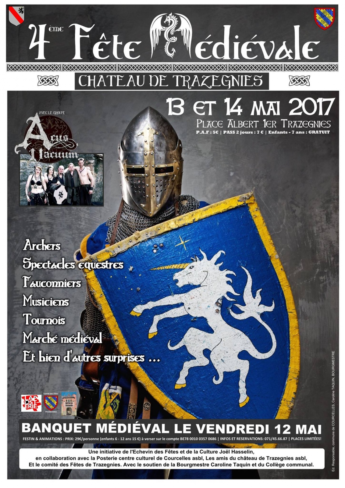 Du 12 au 14 mai 2017, la Commune de Courcelles, en collaboration avec les Amis du Château de Trazegnies asbl, la Posterie Centre culturel asbl, le Comité des Fêtes de Trazegnies vous invite à leur quatrième fête médiévale ! :)
