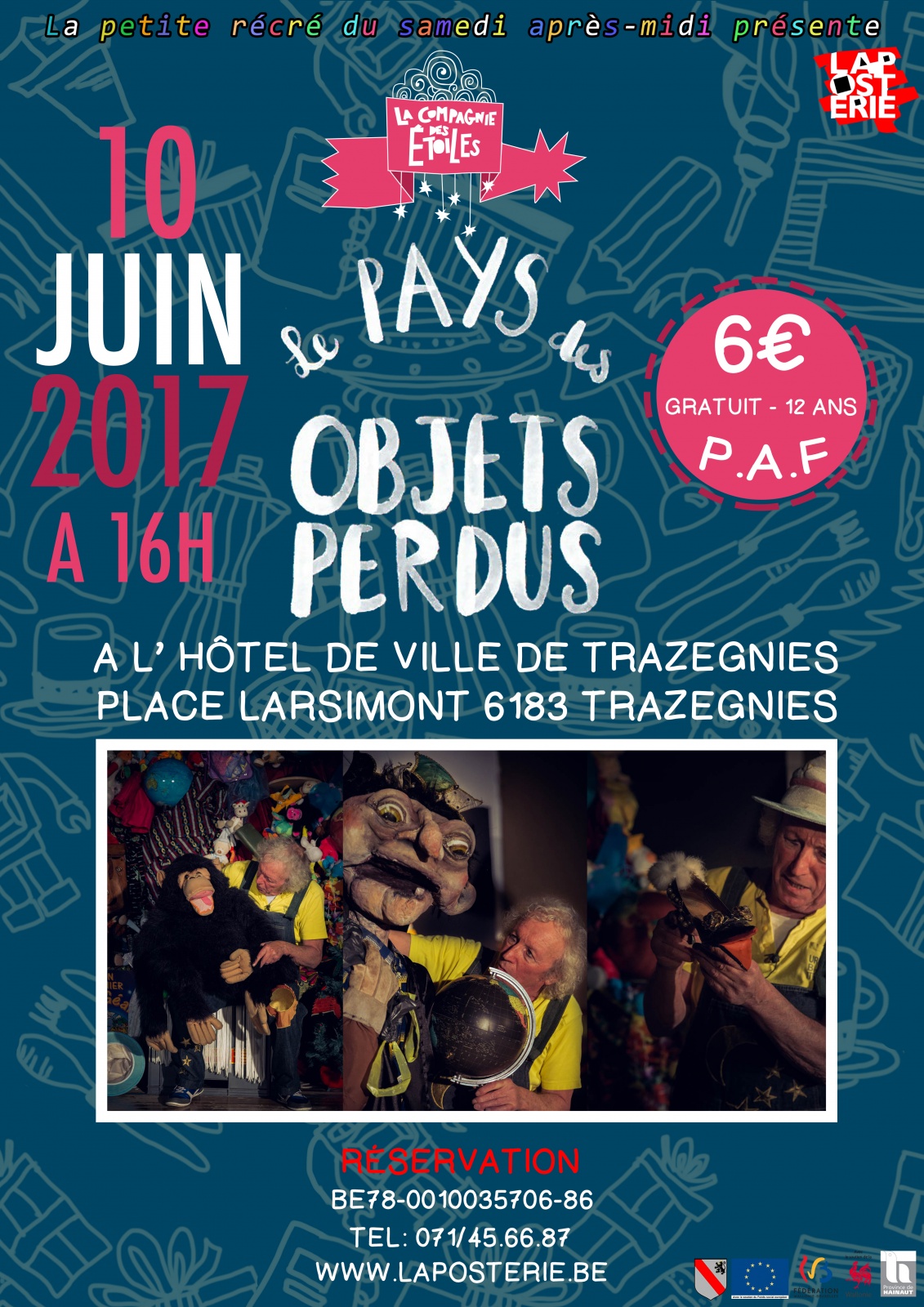 Spectacle pour enfants à partir de 3 ans. Justin l'inventeur nous emmène dans un pays lointain qu'on appelle "Le Pays des Objets Perdus". Les objets perdus décident d'organiser un spectacle de cirque pour l'anniversaire de Sidonie la chaussure. Tout va bien jusqu'à l'arrivée du Grand Ramasseur...
