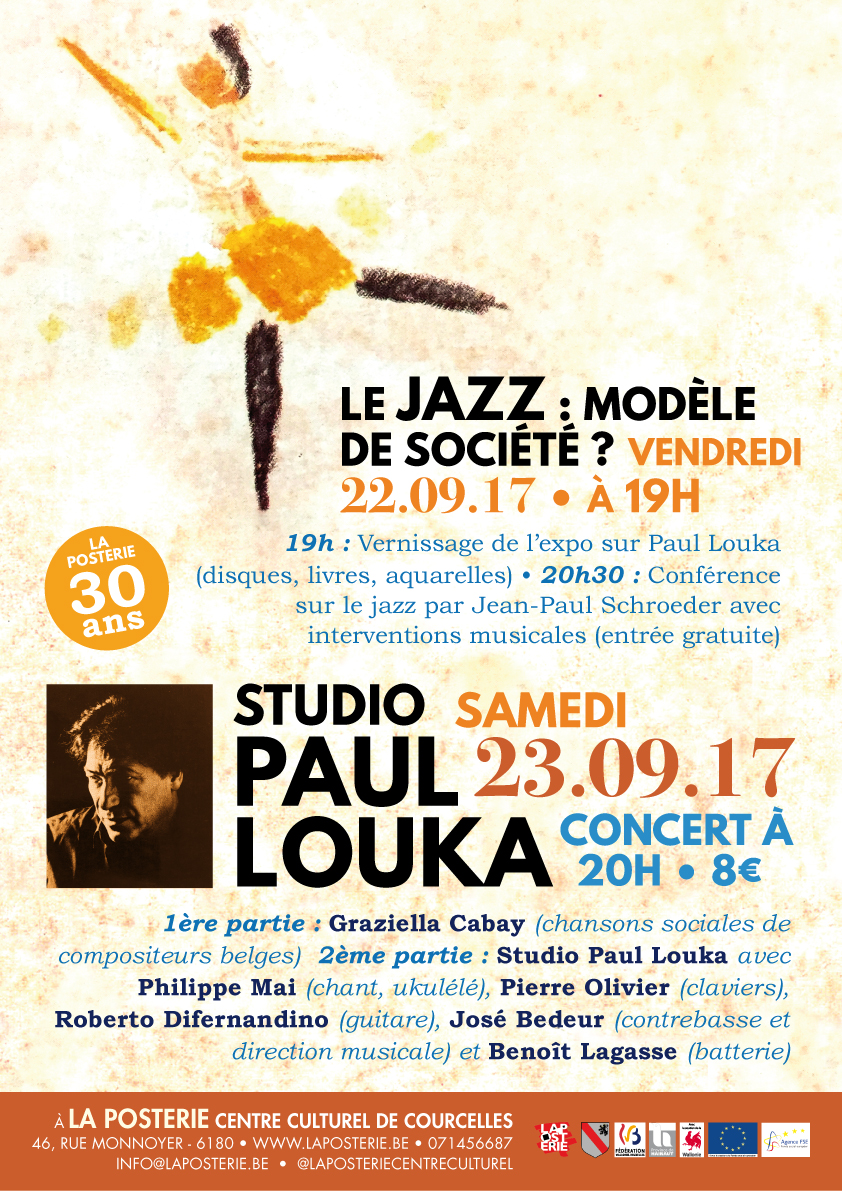 A l'occasion des 30 ans de La Posterie et des Fêtes de la Fédération Wallonie-Bruxelles, La Posterie organise avec José Bedeur un hommage à Paul Louka les vendredi 22 et 23 septembre.