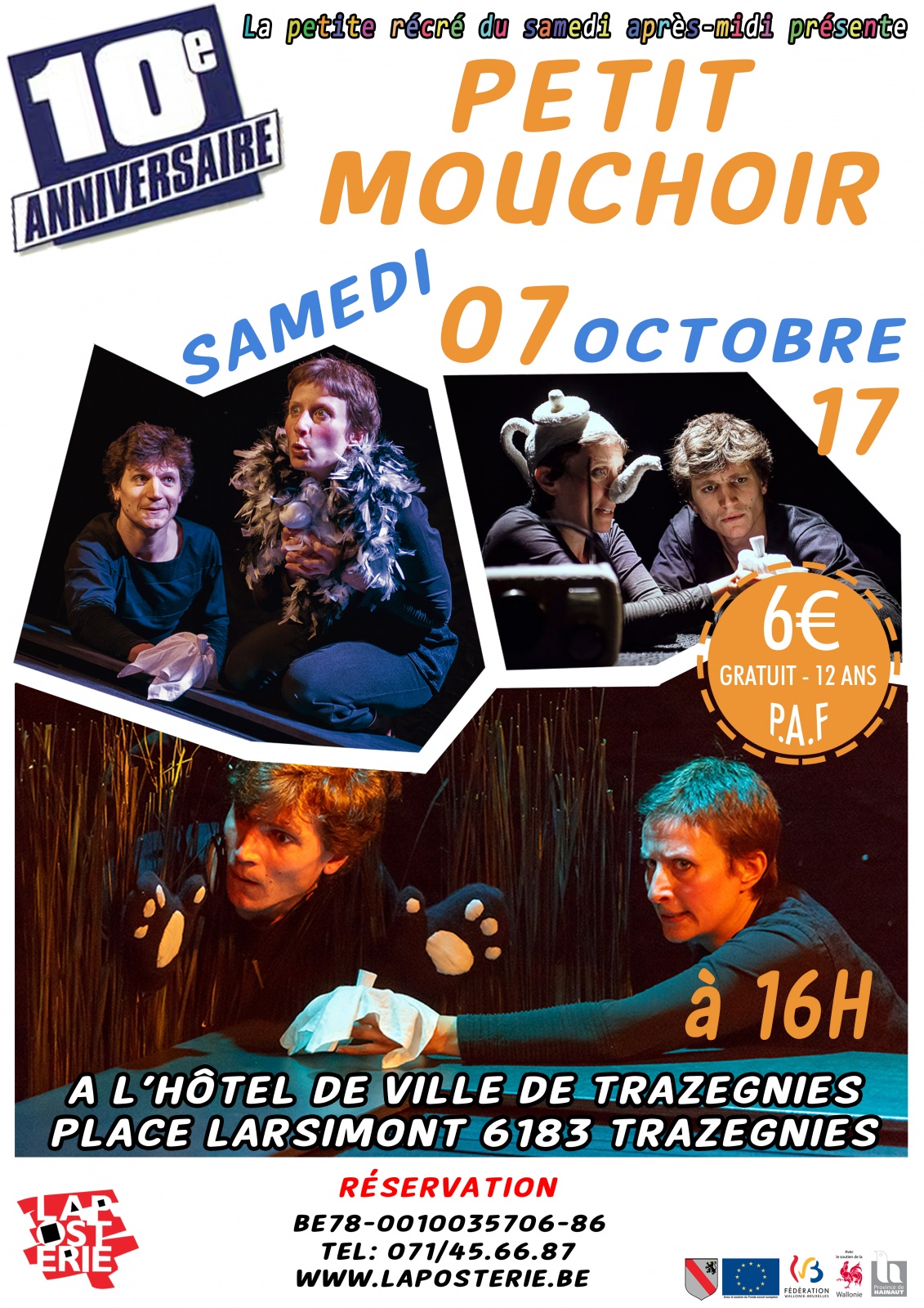 L’Anneau Théâtre a créé ici un dispositif qui accueille les spectateurs tout autour de lui. Complices d’un grand carré noir et d’un petit mouchoir blanc, on s’attache à ce petit bout de chou qui, lui-même perdu, aide chacun à retrouver quelque chose. Avec la cane qui a perdu son œuf, ou avec l’arbre qui a perdu ses feuilles, ce spectacle nous offre des métaphores pleines de poésie et de surprises. Il raconte que grandir c’est perdre parfois, se perdre parfois aussi, mais c’est surtout gagner en nouveautés, en découvertes, en sagesse et fierté.