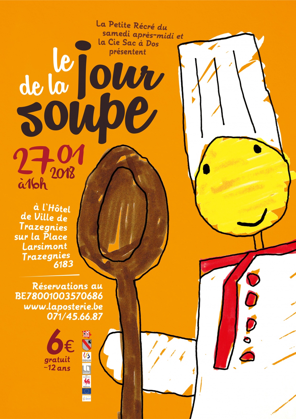 Le jour de la soupe est un spectacle où on cuisine et où on mange. C’est aussi un spectacle qui nous parle de recettes pour grandir : quelques graines de curiosité, un zeste d’envie de découverte, une cuillère de passion, mélangez le tout, laissez mijoter à petit feu… et dégustez avec une omelette soufflée.