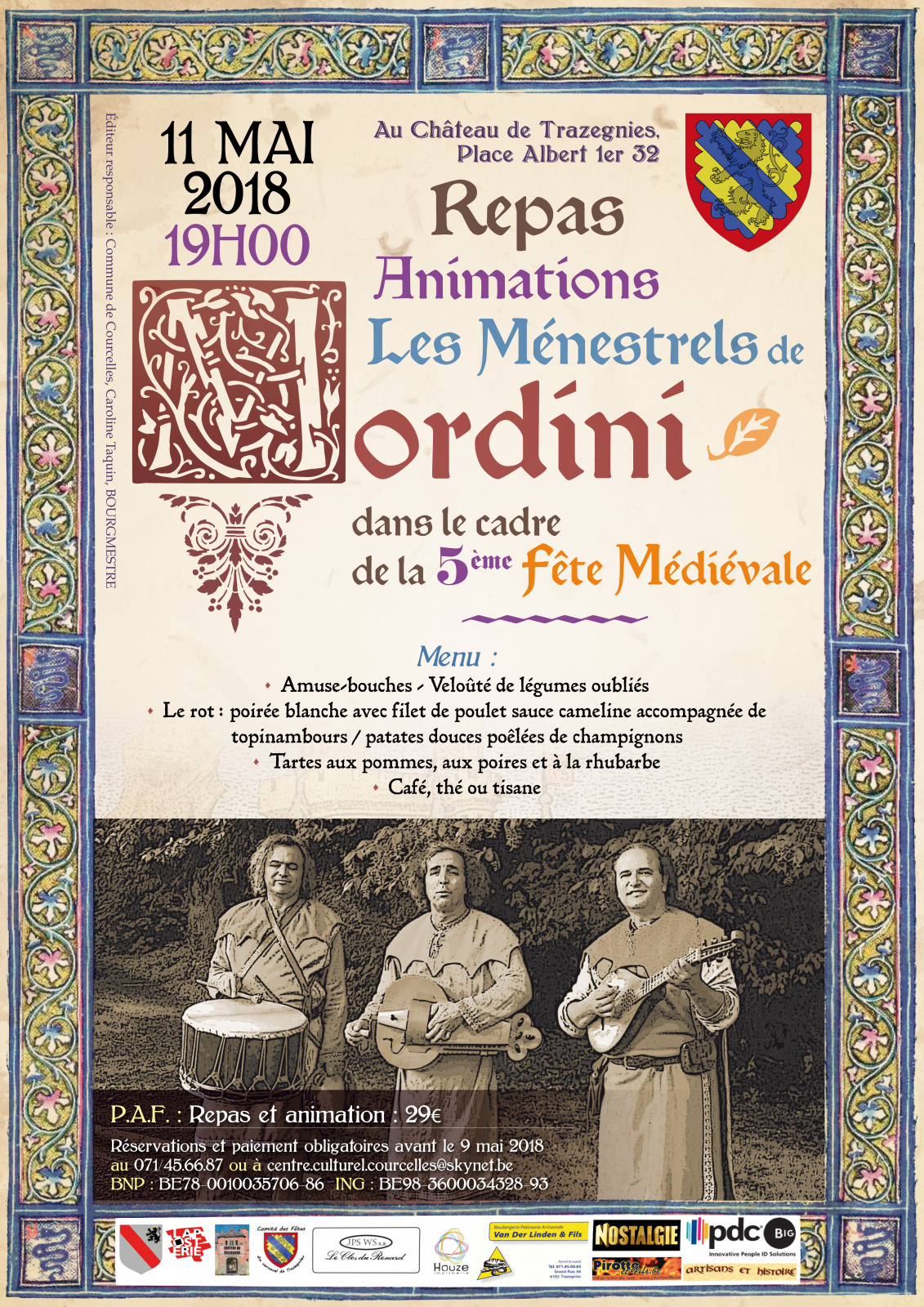 Oyez, oyez damoiselles et damoiseaux ! Un souper spectacle inaugural se tiendra le vendredi 11 mai dans les différentes salles du Château de Trazegnies pour marquer le début de la 5ème édition de la fête médiévale comme il se doit et de ripailler et festoyer dans une ambiance conviviale !