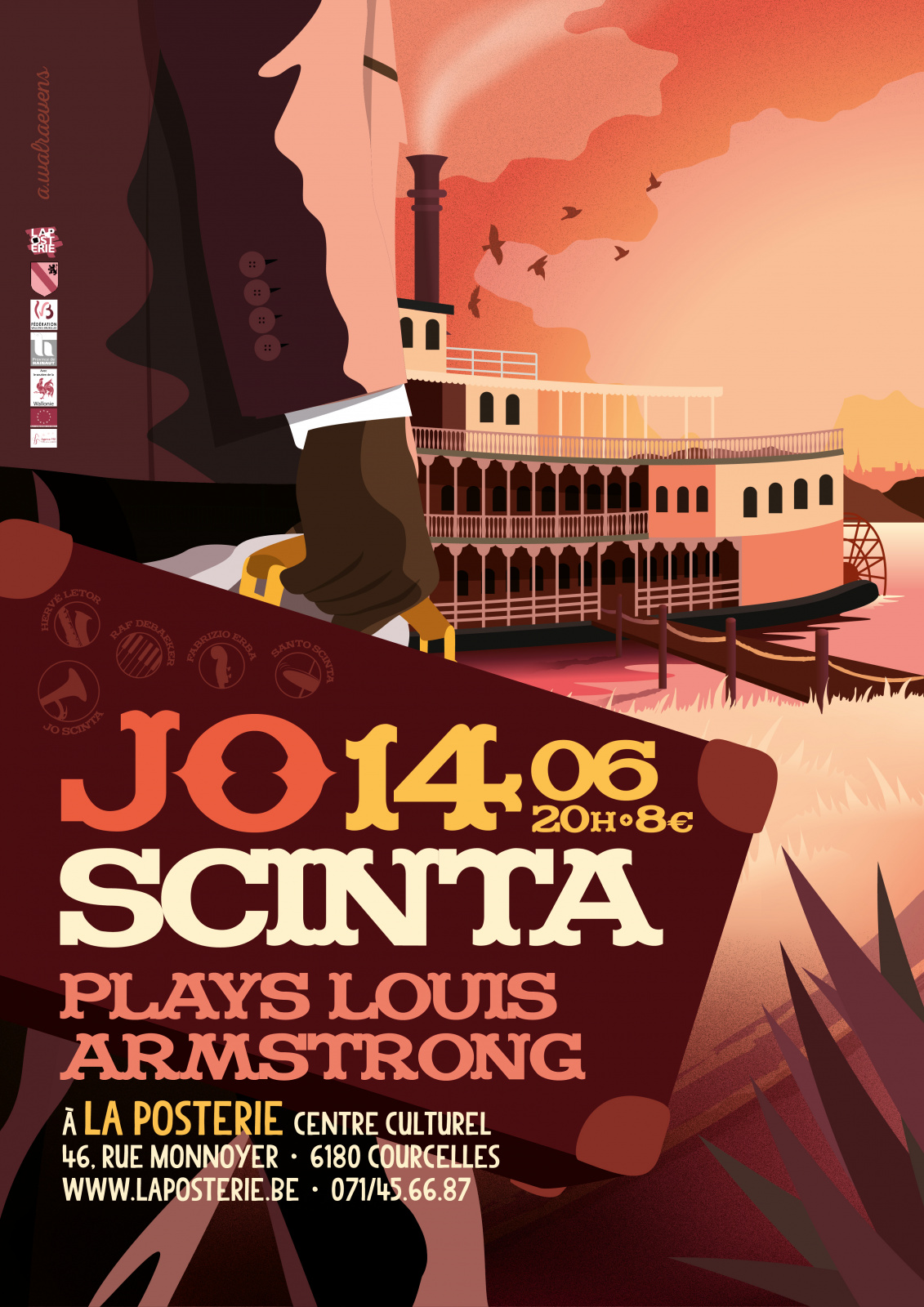 Si vous croyez à la réincarnation, vous verrez ce soir Louis Armstrong. Si vous êtes plutôt ‘théorie du complot’ ce sera Jo Scinta des plus expressif, amusé, débridé, tendre et assez passionnément fou pour vous offrir du grand répertoire. Et si la star vous en laisse le bonheur, vous apprécierez la beauté des variations d’humeurs de ses quatre comparses.