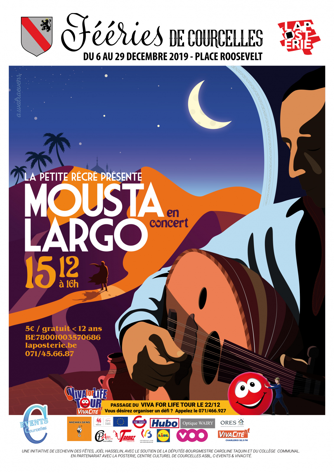 Mousta Largo est un chanteur et musicien belge né à Bruxelles en 1968, Mousta est cependant originaire du grand sud marocain. Cette culture métissée héritée de ses sensibilités belge et marocaine le mène à fonder en 1993 le groupe également métissé “LARGO” composé de deux musiciens et lui-même. Le trio de musique arabo-rock se produit sur de nombreuses scènes belges et internationales : les Francofolies de Spa, Les Francofolies La Rochelle et de Montréal mais aussi la célèbre salle de Forest National à Bruxelles ou celle de l’Olympia de Paris en première partie de Cheb Khaled, obtenant ainsi une projection internationale. Projection qui lui donnera l’occasion de signer leur premier Album “DOUNIA” chez Sony Belgique et BMG France en même temps