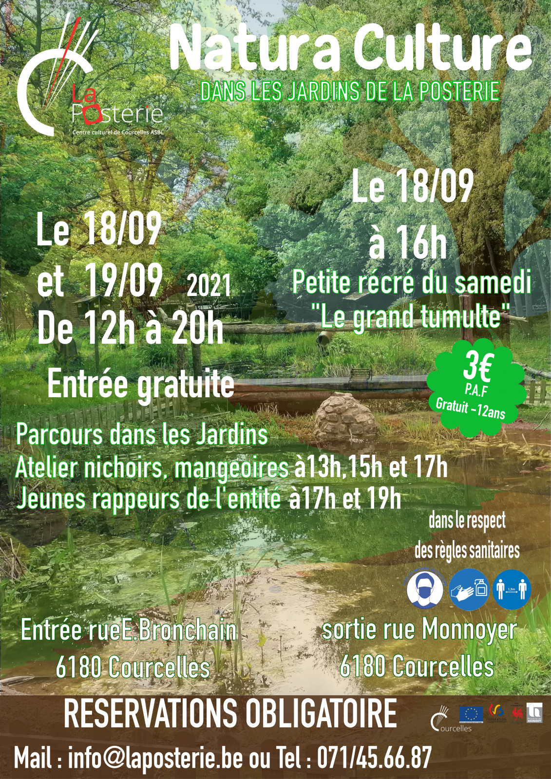 La Posterie Centre culturel de Courcelles vous invite à son week-end Natura culture dans les jardins de La Posterie au programme pour les deux jours
