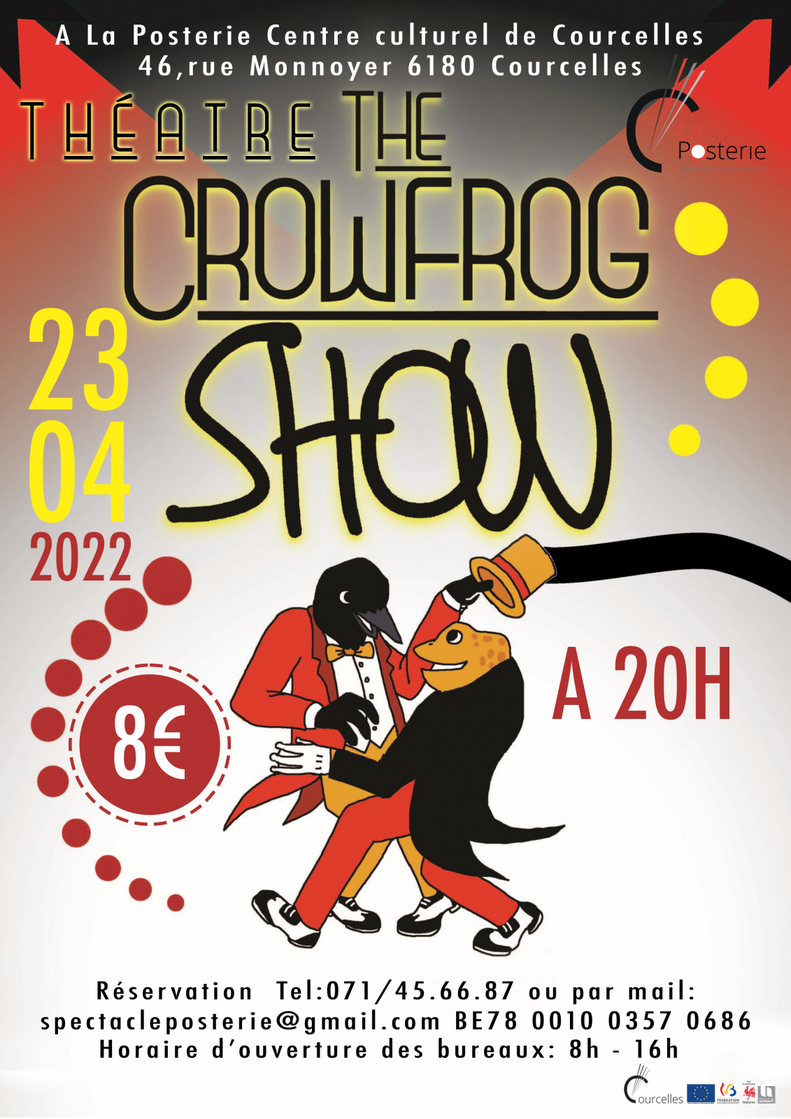 Le Crow Frog Show est un spectacle d’improvisation mêlant musique et jeu théâtral. Il s’inspire de la scène anglo-saxonne dont il reprend la virtuosité, le goût du défi et l’audace. Tout y est permis, tant que c’est au service d’une performance technique et généreuse.