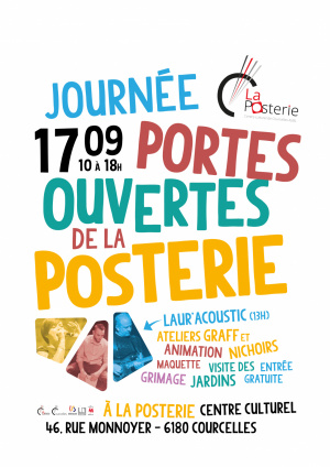Rejoignez-nous le samedi 17 septembre de 10h à 18h lors de la journée portes ouvertes de La Posterie ! Ce sera l’occasion de venir vous initier au graffiti et à la confection de nichoirs ou de maquettes lors d’ateliers, profiter des animations musicales, du concert de Laur’Acoustic (à 13h), de visiter nos jardins ou encore de faire maquiller vos enfants.