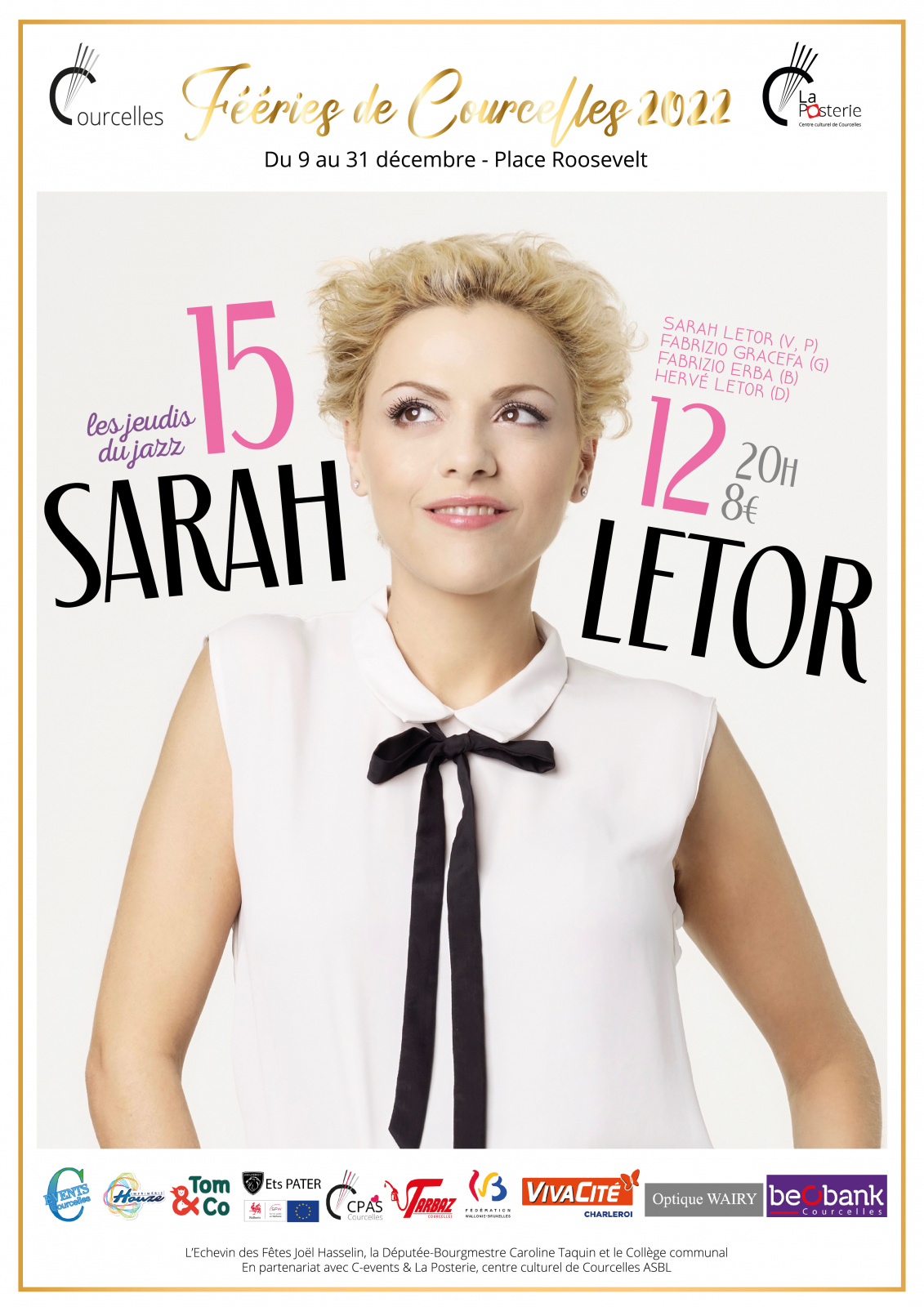 Les jeudis du jazz s’invitent aux Fééries de Courcelles, le 15 décembre à 20h00, avec Sarah Letor et ses musiciens.