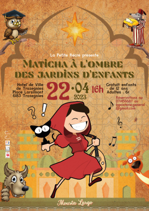 « Maticha à l’ombre des jardins d’enfants » est une belle invitation faite aux petits et grands à venir se promener au cœur même d’une histoire féerique au pays des animaux qui parlent, qui chantent et qui dansent. Cette sublime revisite des comptines d’enfance teintée d’une sonorité orientale saura vous emporter dans sa douce créativité