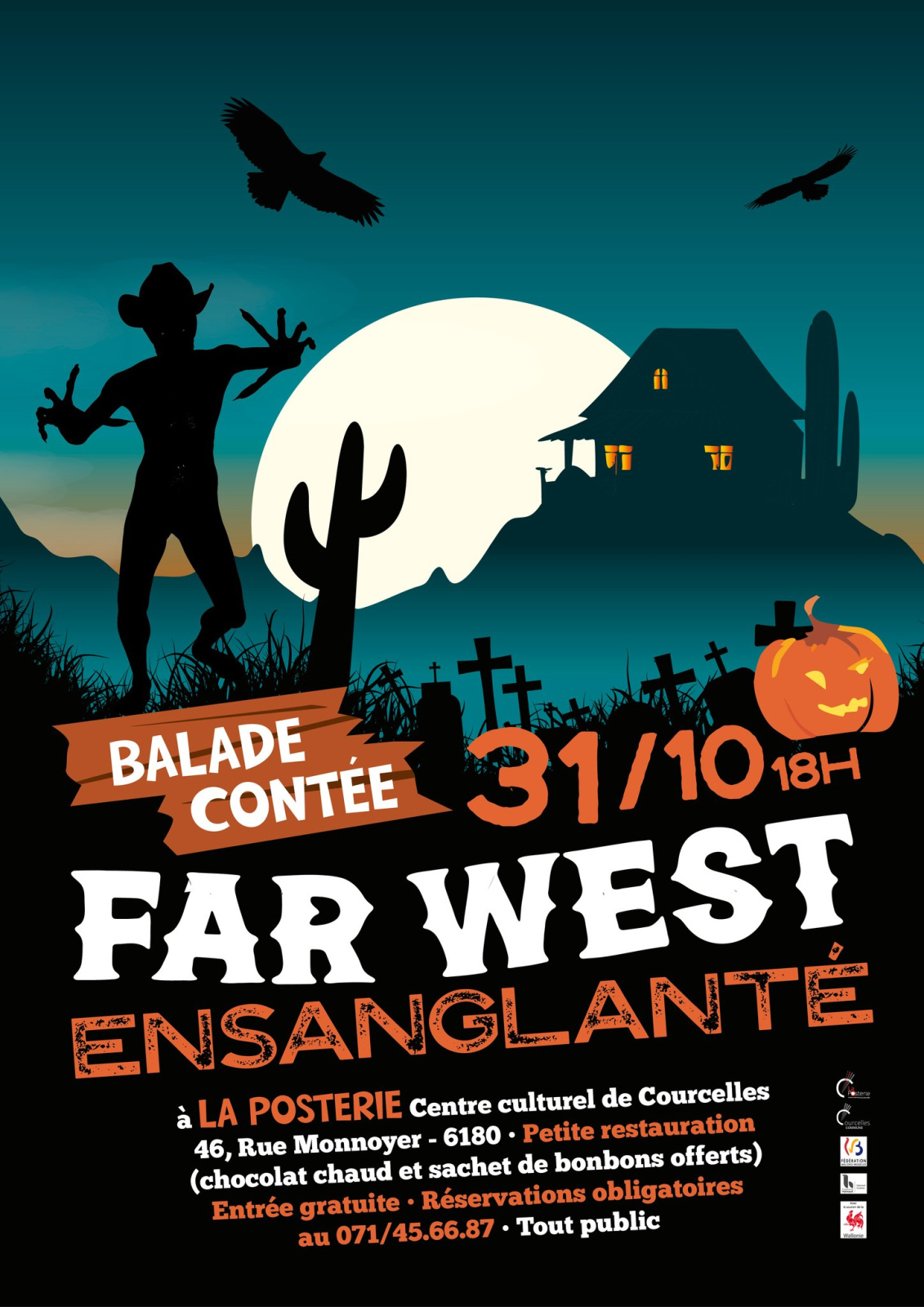 Jeudi 31 octobre 2025 à 18h, Les Tchots de La Posterie vous invitent à leur balade contée "Far West Ensanglanté".