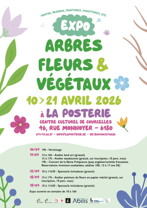 Du 10 au 21 avril 2026, venez découvrir une exposition pleine de nature, de couleurs et de créativité à La PosterIe – Centre culturel de Courcelles.