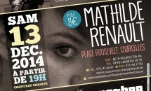 Mathilde Renault, la chanteuse pop/folk lumineuse tantôt teintée jazz ou world music, se produira en concert sur la place Roosevelt à Courcelles le samedi 13 décembre 2014, dans le cadre des Fééries de Courcelles. La première partie sera assurée par Ernest H (à partir de 19h00) et le groupe Mothercover clôturera la soirée.