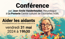 CONFÉRENCE "Aider l'aidant" à La Posterie ! par Jean-Emile Vanderheyden /Neurologue Le vendredi 31 mai à 19h30, benvenue à tous !