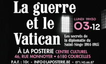 "La guerre et le Vatican : les secrets de la diplomatie du Saint-Siège (1914-1915)", conférence-débat avec Johan Ickx (Directeur des Archives historiques de la Secrétairerie d'Etat du Saint-Siège, membre de l'Ordre de la Fleur de Lys et auteur du livre). Le Centre culturel de Courcelles organisera le lundi 3 décembre 2018 une conférence débat, au...