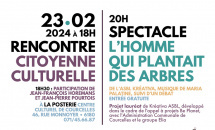18h : Rencontre Citoyenne Culturelle18h30 : Debat avec Jean-Francois Horemans et Jean-Pierre Pourtois20h : SPECTACLE "L'homme qui plantait des arbres"
